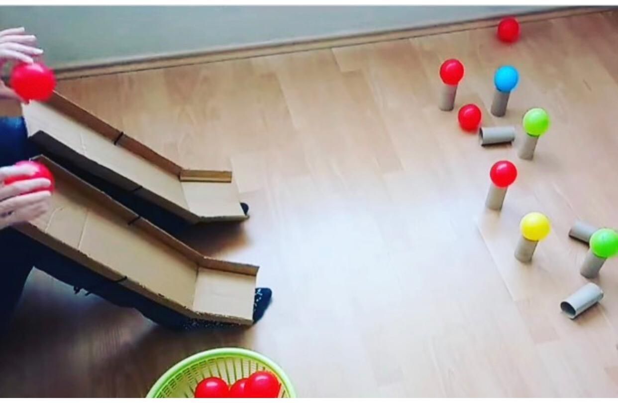 Tratando de derribar las bolas con nuestro tobogán de piernas